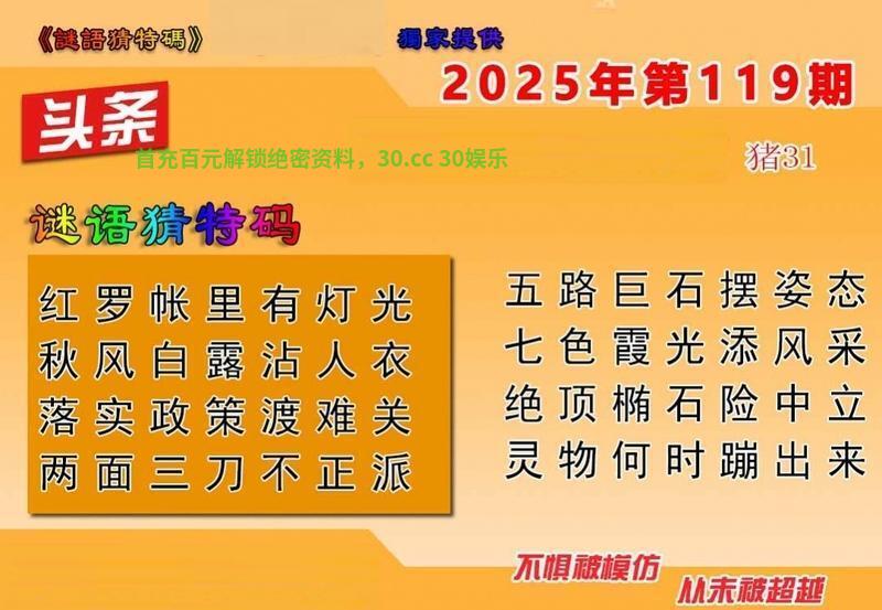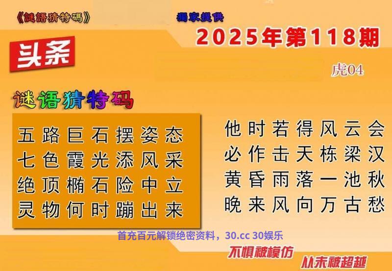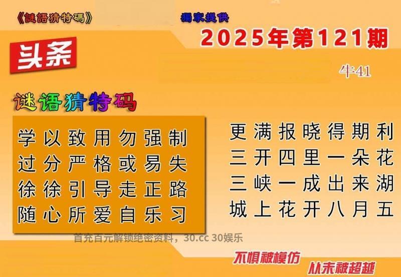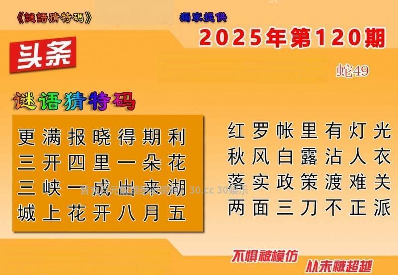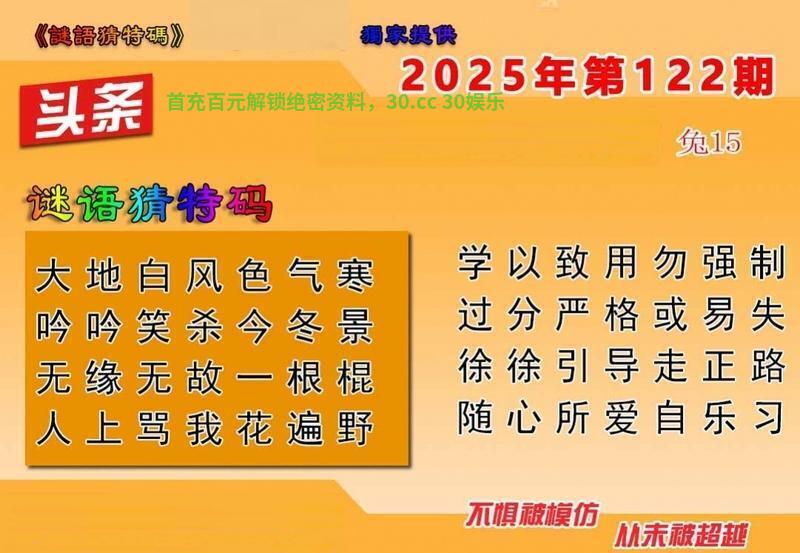 122期六合头条【解迷语猜特码】 大地白风色气寒 吟吟笑杀今冬景 无缘无故一根棍 人上骂我花遍野 解译:猴。因为“一根棍”可以联想到猴子的身形灵活,善于攀爬,而“花遍野”或许是在形容猴子活泼好动,常常在树林间跳跃 九肖:猴龙鸡羊虎马狗兔蛇 六肖:猴龙鸡羊虎马 三肖:猴龙鸡 一肖:猴 |